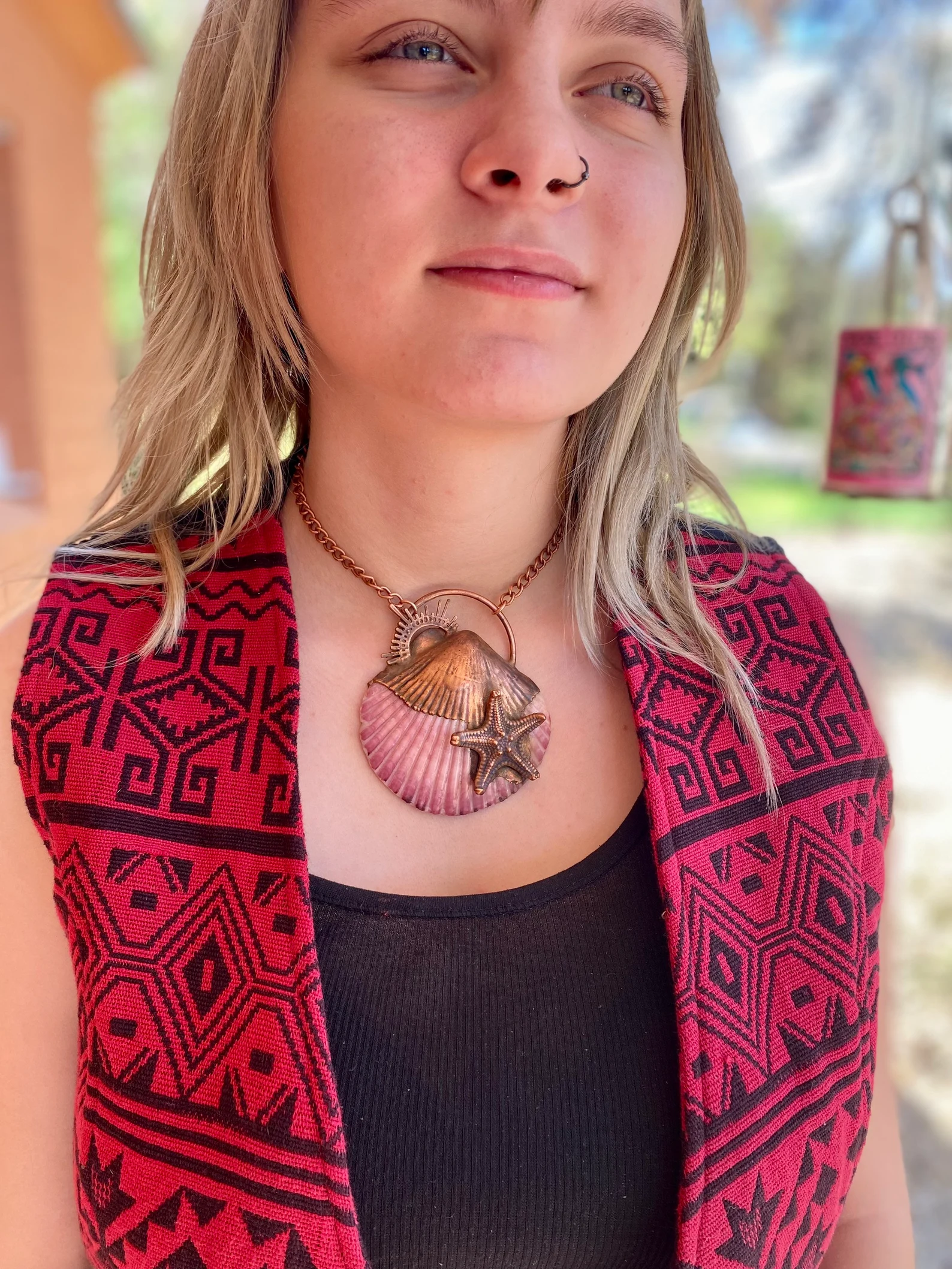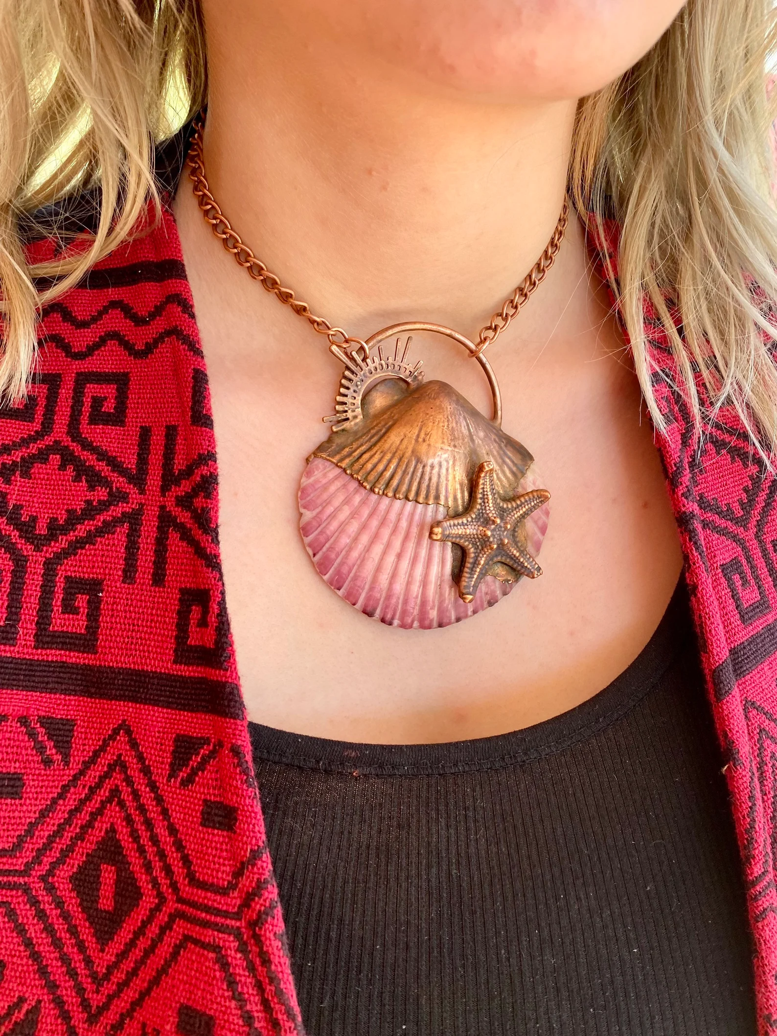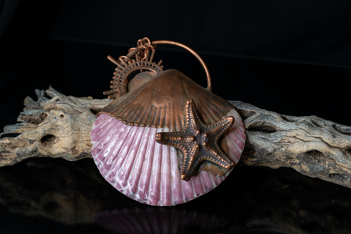 I created a beautiful necklace featuring one of my prettiest seashells and a starfish, which I electroformed into this lovely piece.